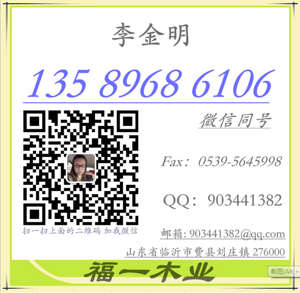 | 李金明13589686106 本廠始建與1998年,多年在以人為本,誠信為金的原則下,取得了優(yōu)異的成績。主產(chǎn)3-18厘米人造膠合板,2005年又增生產(chǎn)線兩條,主產(chǎn)LVL膠合板合板,異形包裝膠合板,大尺寸膠合板,鋸末塊。產(chǎn)品至今供不應求,也可以根據(jù)客戶要求定做各種規(guī)格膠合板,歡迎各界人士前來洽談合作。 |