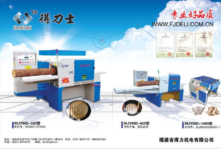 福建省得力機電有限公司——是一家集研發(fā)、制造、銷售為一體的綜合性木工機械制造企業(yè)。公司前身是福建省長汀縣得力機械廠,始建于1994年。目前專業(yè)生產(chǎn)圓木多片鋸、方料多片鋸,全自動圓木斷料鋸機等產(chǎn)品,具有送料順暢、加工精細、安全性強、效率高、耗材低、環(huán)保等優(yōu)點,是加工指接板和細木工板的首選設(shè)備。 中國第一臺帶導(dǎo)航的圓木多片鋸由我公司研發(fā)成功,并且獲得國家多項專利證書。該機投入市場后,各地買家均反映所購買的圓木多片鋸機是傳統(tǒng)帶鋸機生產(chǎn)效率的四倍,并且操作簡便安全,徹底改變了以往幾十年來帶鋸機只出木機半成品且需高薪聘請帶鋸師傅手動加工的歷史。它的操作便捷安全與高效能的生產(chǎn)引來各地木料加工廠爭相搶購,一時出現(xiàn)供不應(yīng)求的局面。