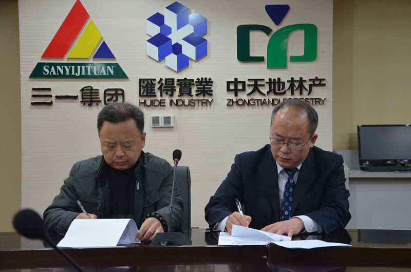 中天地木業(yè)有限公司與浙江夢(mèng)天木門廠簽訂長(zhǎng)期供貨合同,第一批指接材將于12年1月10日前到達(dá)夢(mèng)天木門廠。(圖為中天地銷售公司總經(jīng)理與夢(mèng)天木門廠代表在中天地成都總部簽訂供貨合同)