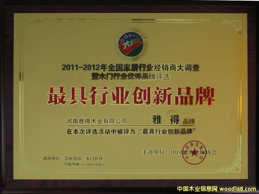 祝賀【雅得木門】榮獲“最具行業(yè)創(chuàng)新品牌”榮譽稱號-河南雅得木業(yè)有限公司