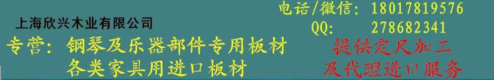 本公司主要代理進口經銷鋼琴及樂器部件專用木材及各類家具用進口板材,公司與國外多家鋸木廠直接合作,可提供定尺加工服務。 涉及的實木烘干板材有:歐洲角梁木,歐洲櫸木,新西蘭輻射松,俄羅斯樟子松,北美材:紅橡木,白橡木,白蠟木,黃楊木,椴木,赤楊木,櫻桃木,山核桃,黑胡桃等。詳情歡迎來電或微信咨詢:180 1781 9576 , 在線QQ:278 682 341 |